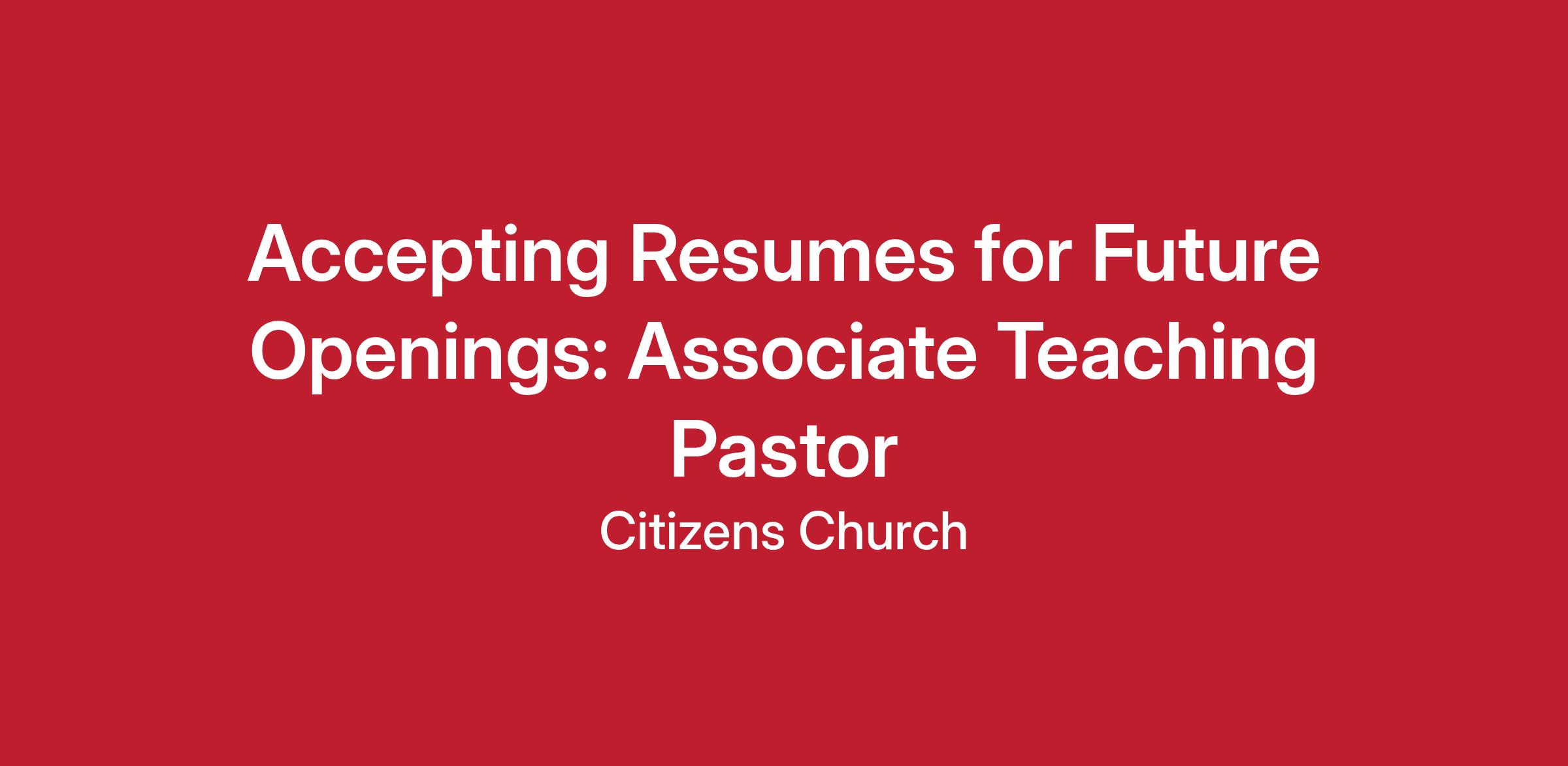 Accepting Resumes for Future Openings: Associate Teaching Pastor