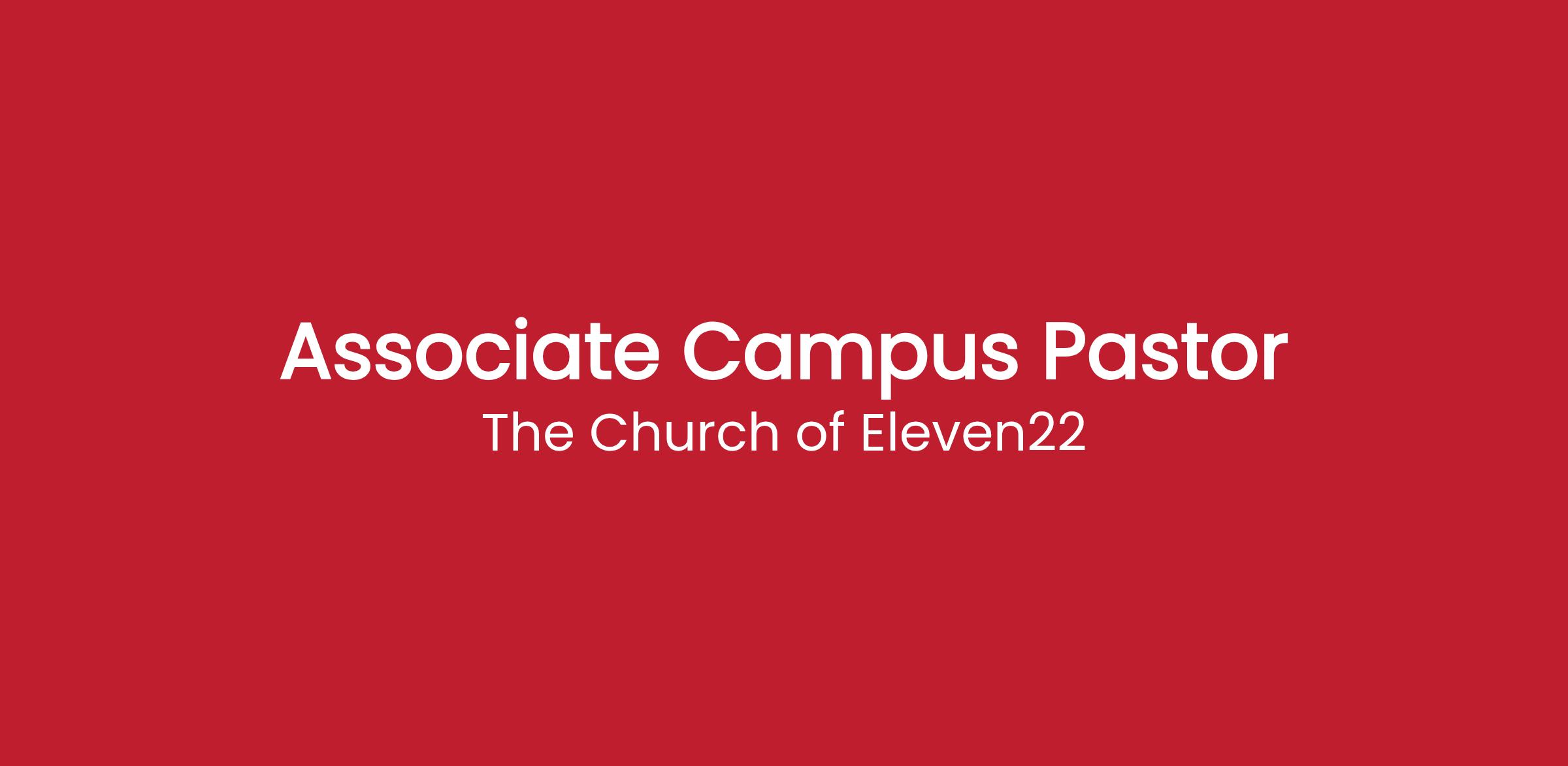 The Associate Campus Pastor provides leadership to the campus team in the areas of ministry growth and execution by implementing the culture of The Church of Eleven22®, casting vision for healthy ministry development and supporting the shepherding and equipping of the saints for the work of ministry.