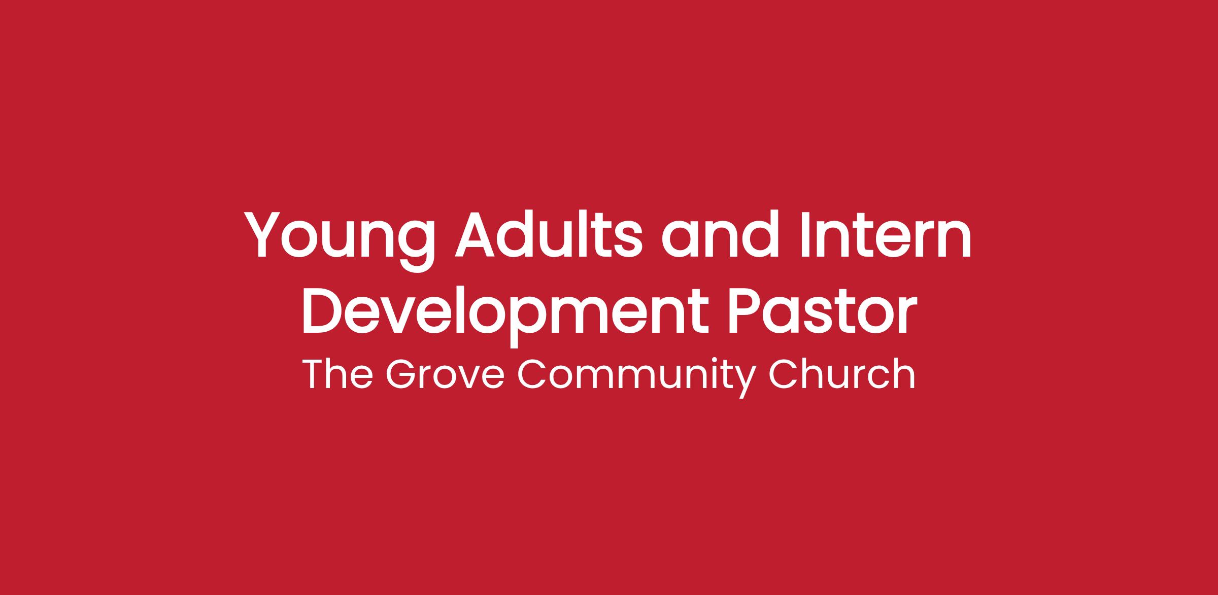 DescriptionThe Grove’s Young Adult ministry seeks to help young adults age 18 to 29 to understand what they were created for and equip them to live within a Christian worldview and answer the “big questions” of life. In addition, through internships and ministry training opportunities, we are developing future ministry leaders for the church around the world. The Young Adult and Intern Development Pastor plays an integral role in growing and training young adults, while creating and maintaining a robust system for ensuring interns are cared for and equipped into future ministry roles.